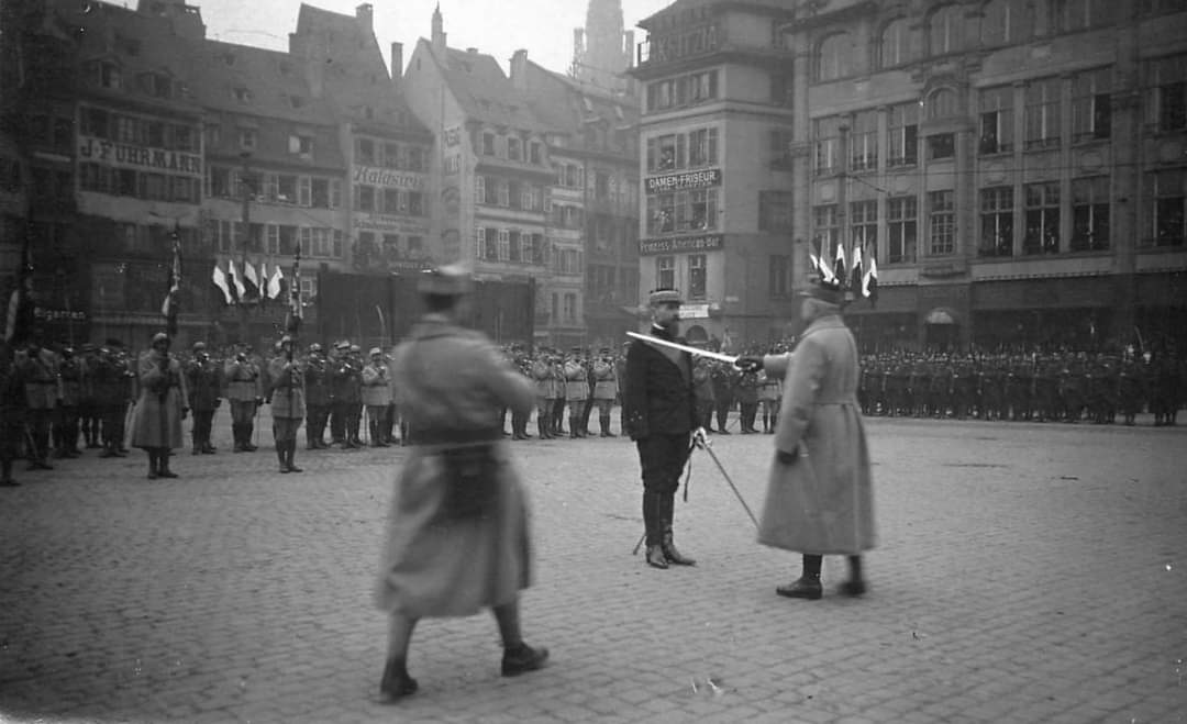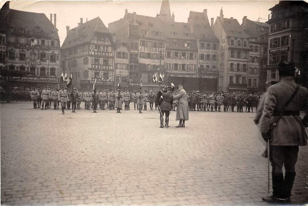 26 novembre 2023 Documents 1 minute de lecture 25 novembre 1918 : Pétain libère Strasbourg ! Quelques images de cet événement exceptionnel nous ont été envoyés via les réseaux sociaux. Partager Facebook Twitter Mots clés #maréchal Pétain1918Strasbourg A lire également 10 octobre 2024 Appel aux dons pour la restauration de l’oratoire Saint Benoît Labre 26 mai 2024 Discours du Maréchal à l’occasion de la Fête des Mères Navigation de l’article Article précédent Previous post: Bonne rentrée des classes !